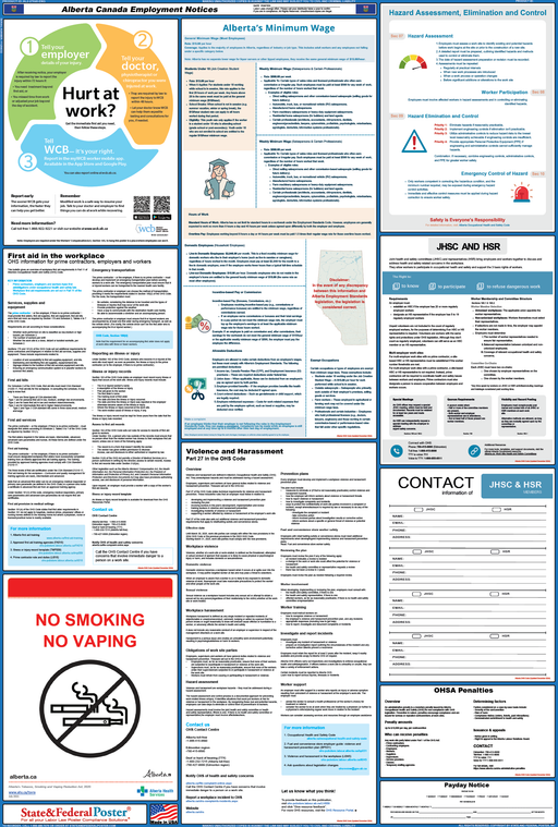 Alberta Canada Employment Notices Poster Includes: Updated with the latest Employment Standards Code, Occupational Health & Safety Act (OHS Cod...