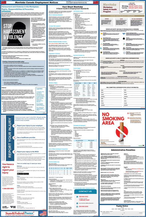 Manitoba Canada Employment Notices Poster Includes: Updated with the latest Employment Standards Code, Workplace Safety and Health Act & Regula...