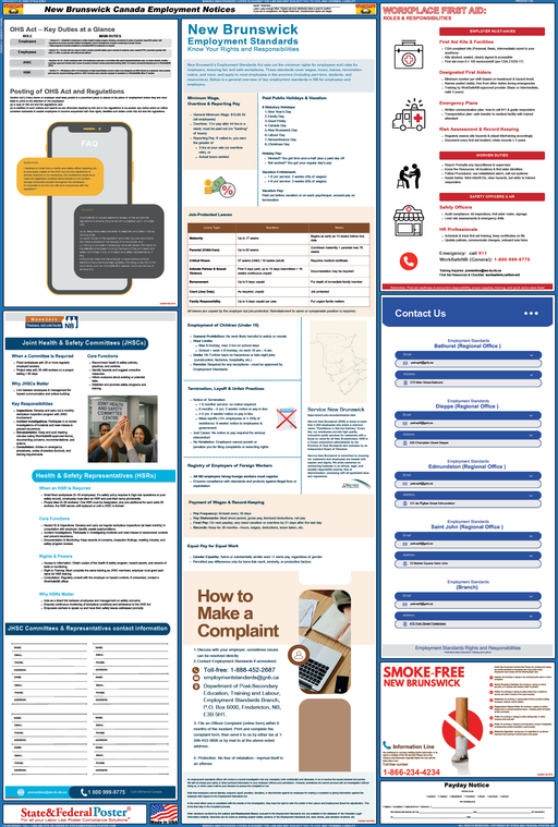 New Brunswick Canada Employment Notices Poster Includes: Updated with New Brunswick’s Employment Standards Act, Occupational Health & Safety Ac...