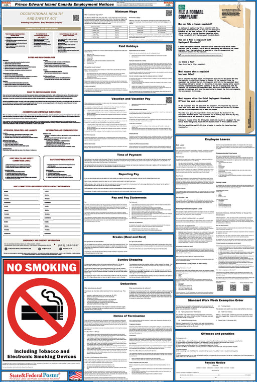 Prince Edward Island Canada Employment Notices Poster Includes: Updated with the latest Employment Standards Act (PEI) – Covers Paid Holidays, Hour...