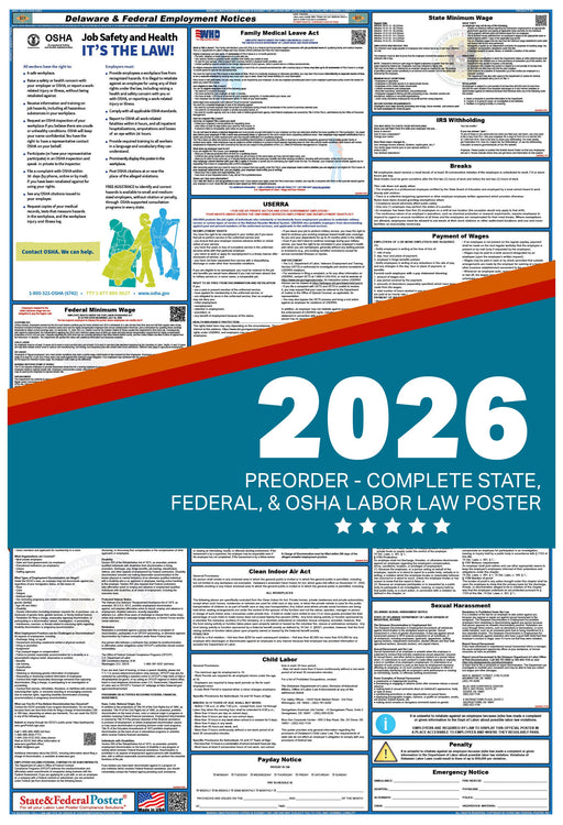View full detailsPREORDER - Digital Delaware Labor Law Poster 2026