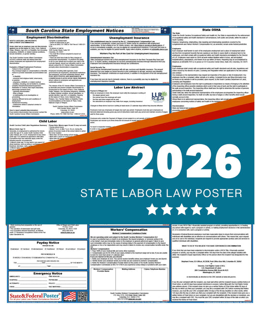 PREORDER - South Carolina State Labor Law Poster 2026