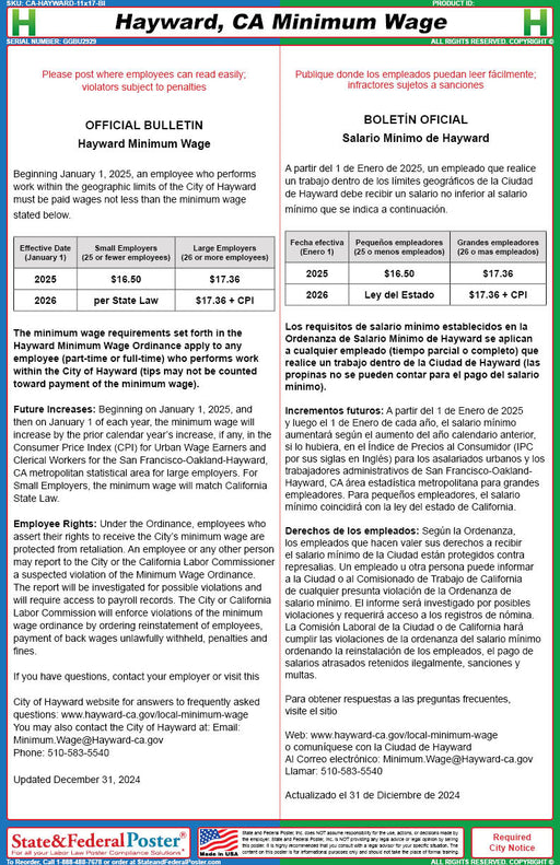 Digital Hayward, California Minimum Wage (Bilingual)