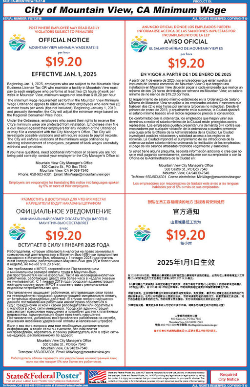 Digital Mountain View, California Minimum Wage Poster (Multilingual)