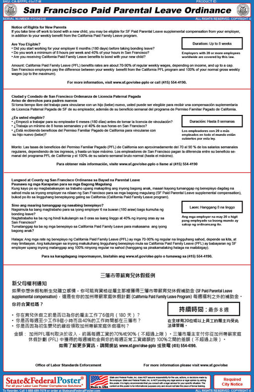 View full detailsDigital San Francisco, California Labor Law City Poster (Multilingual)