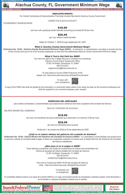 Digital FL, Alachua County Government Minimum Wage Poster (Bilingual)