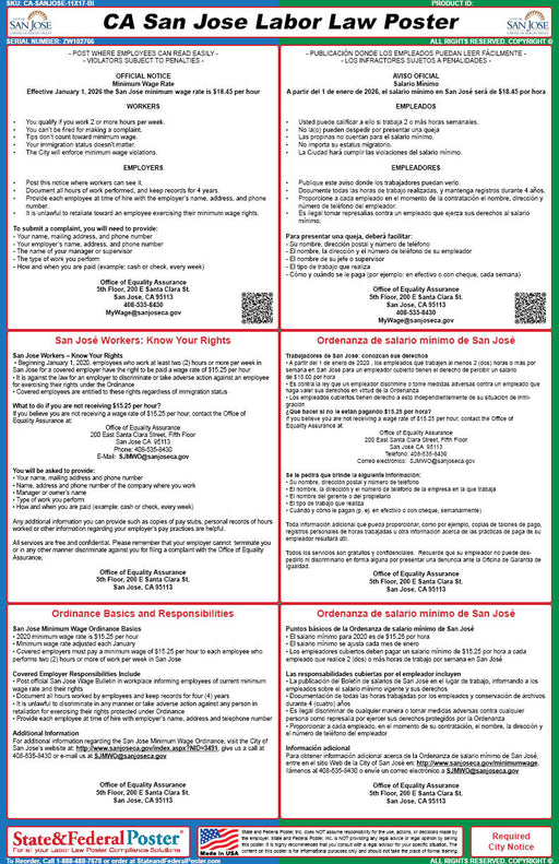 View full detailsSan Jose Minimum Wage Poster (Bilingual)