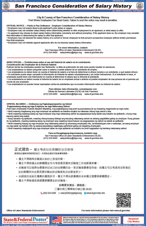 View full detailsSan Francisco, California Minimum Wage Poster (Multilingual)