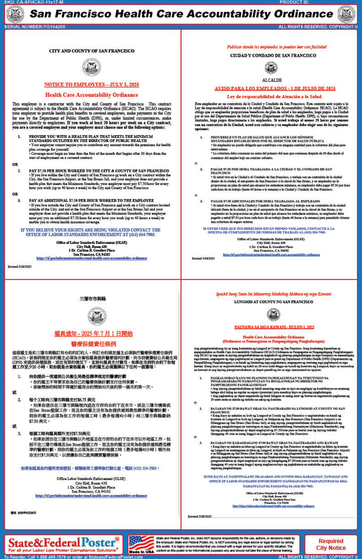 View full detailsSan Francisco, California Labor Law City Poster (Multilingual)