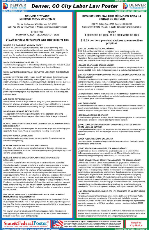 View full detailsDenver, Colorado City Labor Law Poster (Bilingual)
