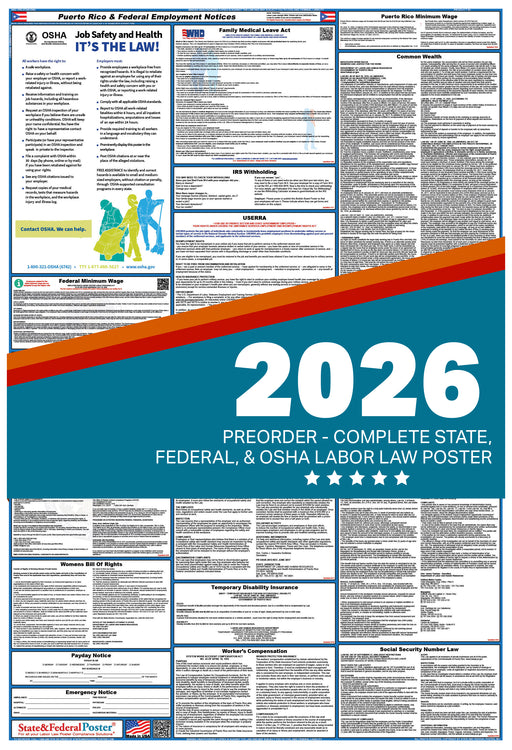 View full detailsPREORDER - Puerto Rico State and Federal Labor Law Poster 2026