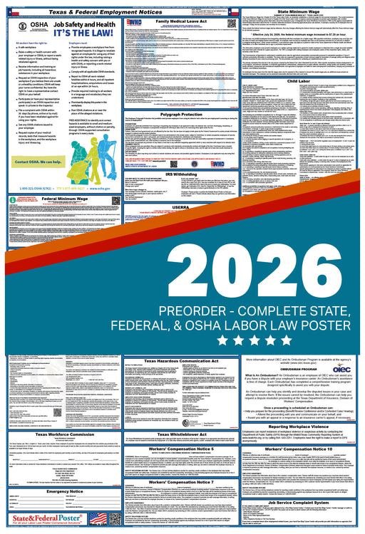 View full detailsPREORDER - Texas State and Federal Labor Law Poster 2026