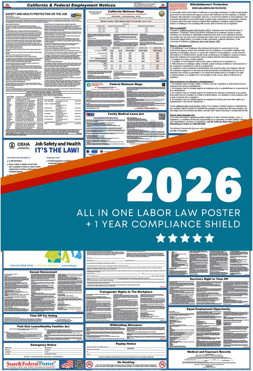 View full detailsPREORDER - 2026 State & Federal Poster + 1 Year Compliance Shield Plan