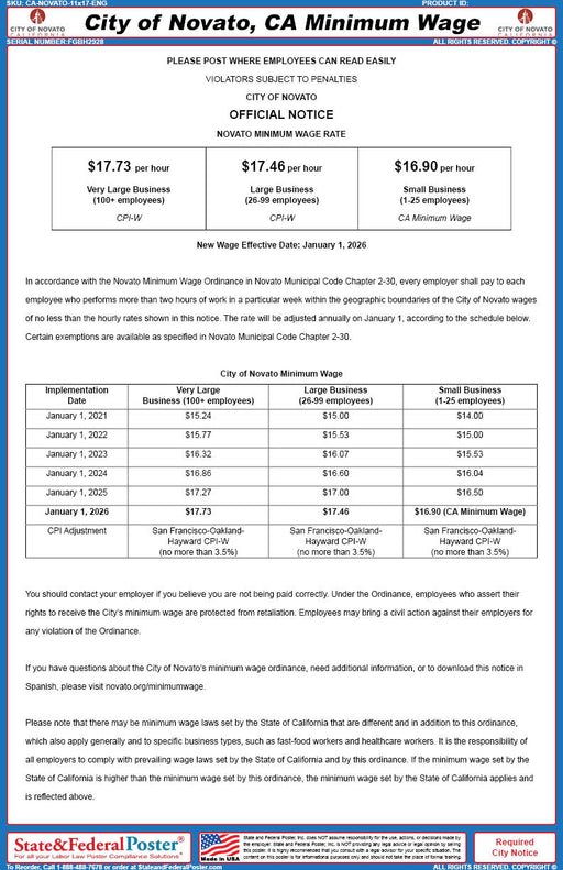 View full detailsDigital Petaluma, California Minimum Wage Poster (Bilingual)