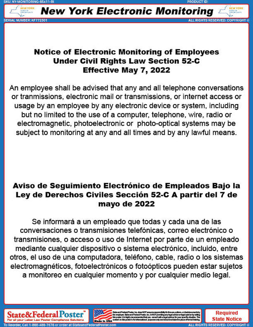 View full detailsDigital New York Notice of Electronic Monitoring Poster (Bilingual)