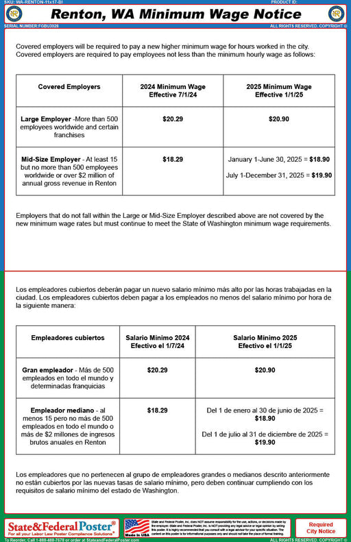 View full detailsDigital Renton, Washington Minimum Wage Notice (Bilingual)