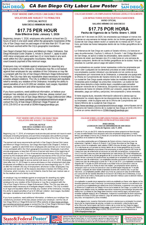 Digital San Diego, California City Labor Law Poster (Bilingual)