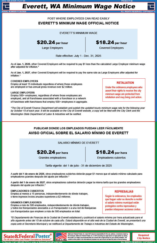 Digital Everett, Washington Minimum Wage Poster (Bilingual)