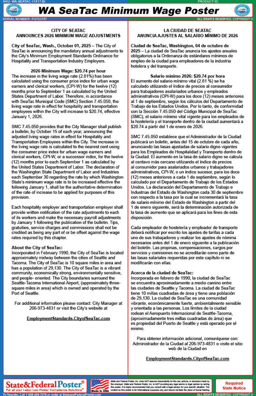 Digital SeaTac, Washington Minimum Wage Poster (Bilingual)