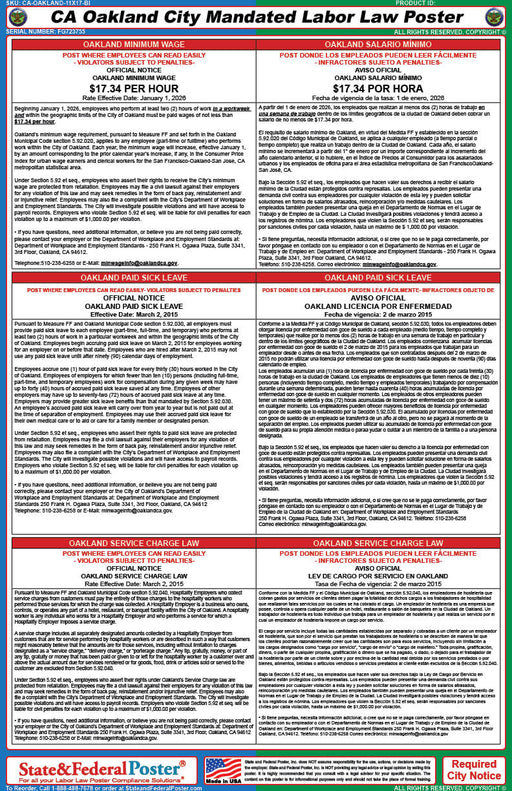View full detailsOakland, California City Mandated Labor Law Poster (Bilingual)