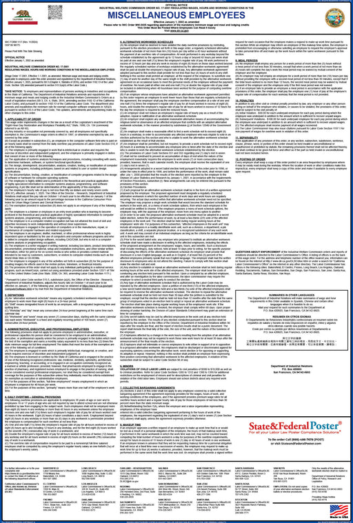 For any employer not covered by any other wage order, post IWC 17. The Industrial Welfare Commission was established to regulate wages, hours and w...
