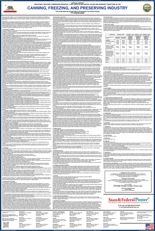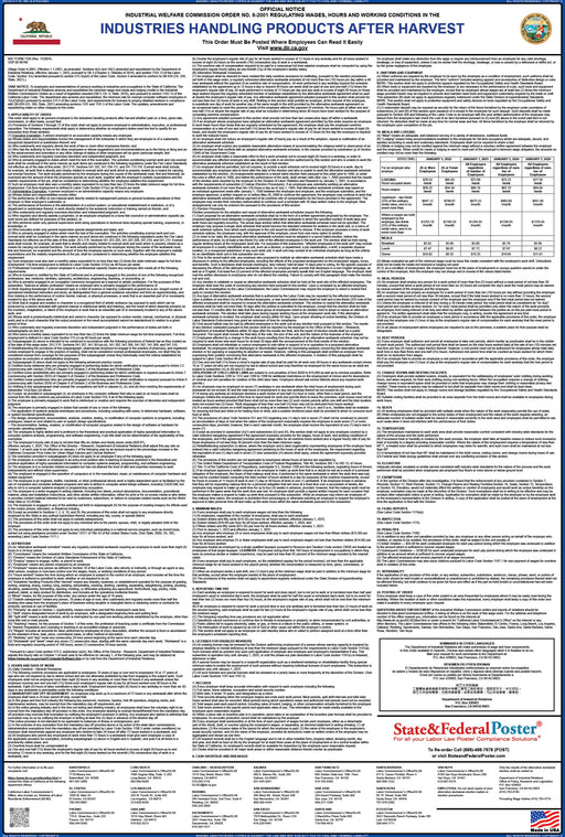 The Department of Industrial Relations requires employers to post the IWC Industry or Occupation Order next to their Labor Law Poster, including the minimum wage information. If you are not sure which IWC number your business belongs to, please refer to the Index of Businesses and Occupations