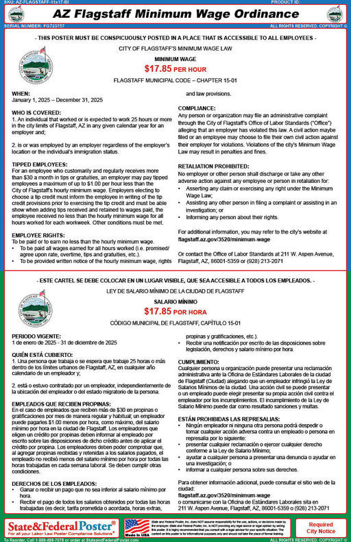 Flagstaff, Arizona Minimum Wage Ordinance Poster (Bilingual)