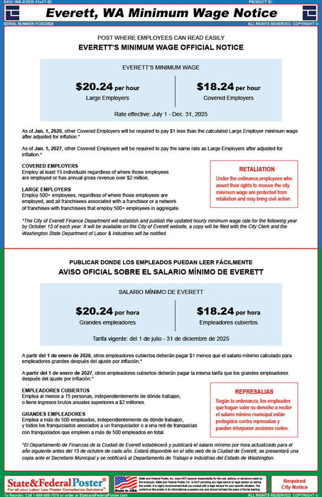 Everett, Washington Minimum Wage Poster (Bilingual)