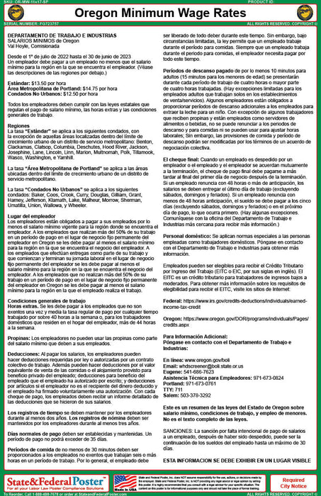 An employer shall pay an employee no less than the minimum wage rate for the region in which the employer is located. (See region descriptions below.)